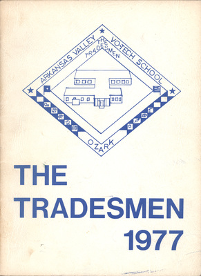 This is the 1977 yearbook of the Arkansas Valley Vocational Technical School at Ozark, Arkansas, now Arkansas Tech University-Ozark Campus.
