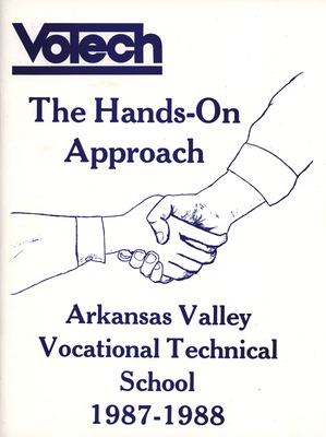This is the 1987 yearbook of the Arkansas Valley Vocational Technical School at Ozark, Arkansas, now Arkansas Tech University-Ozark Campus.